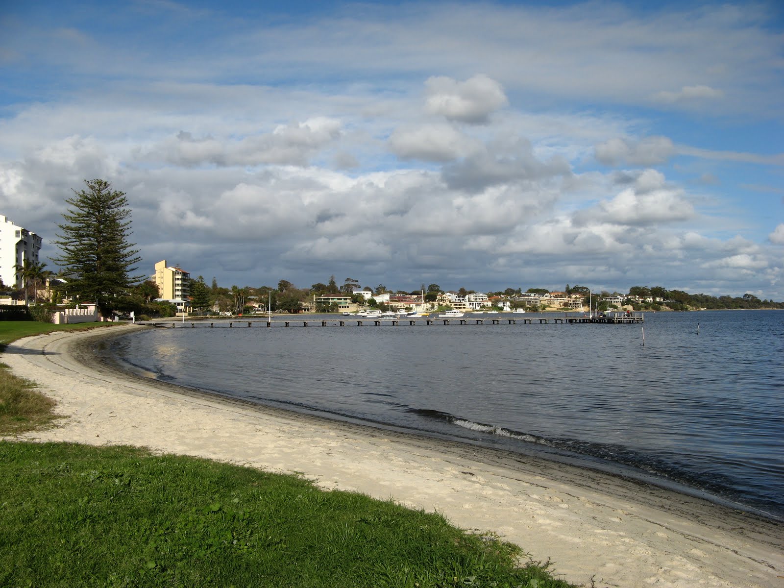 Driving south from Perth there are a couple of lovely coastal towns on the way. First one, Rockingham, is supposed to have really lovely fresh seafood, but we missed that and soon we were in Mandurah. We were planning to drive straight through, but I spotted claw-like canals all over the suburbia on the street map, so we decided to check those out. It turns out that yes, the town has numerous canals lined with big suburban houses. Most of them have also big boats in front of the house, and when you look at the cars that these people drive, they're normal... oh wait, that guy is a plumber! The picture shows some of the houses facing the canal (you can see a boat or seven there).