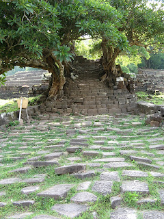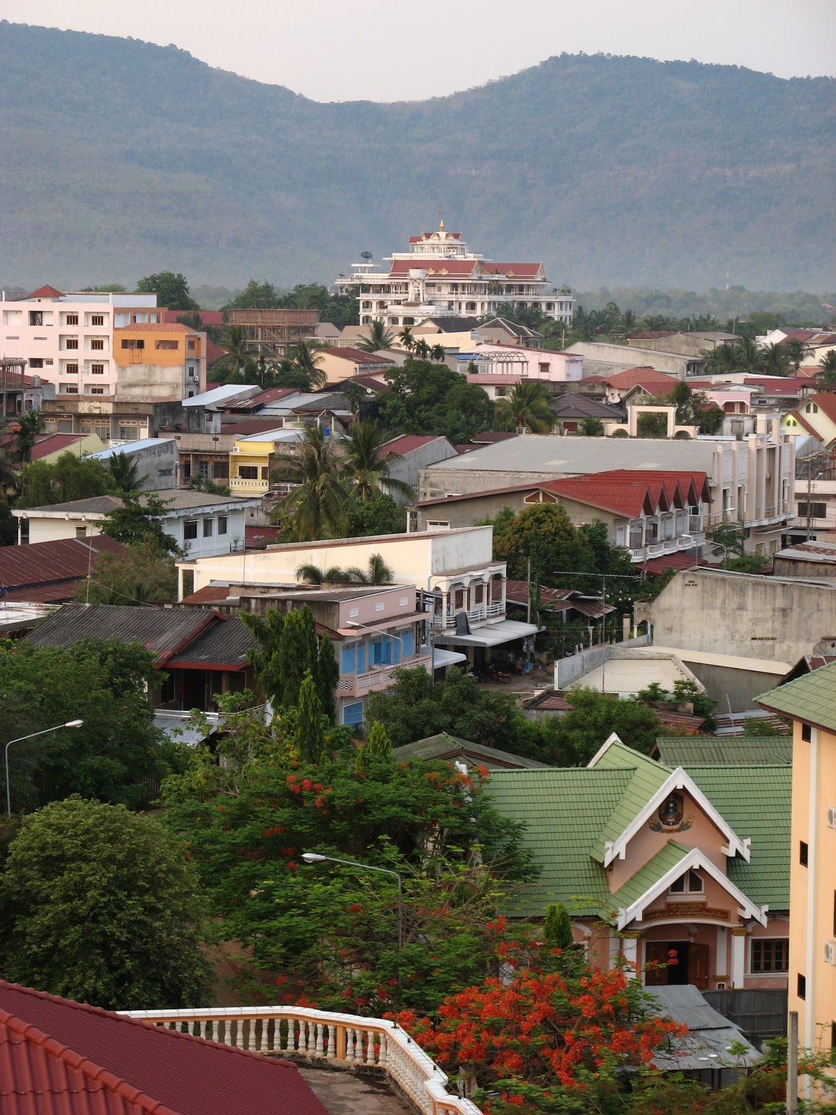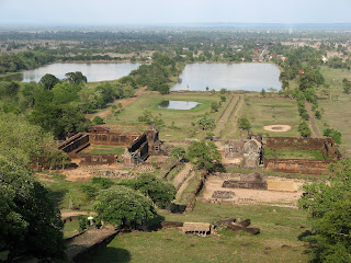 So we took the Friendship bridge to the west bank and the brand new and empty road all the way to Champasak (35 km) and pre-Angorian temple area of Vat Phou. The road took us through beautiful farm areas - one side we had the Mekong river and some mountains on the other. Vat Phou was definitely worth seeing. Much smaller than most other World Heritage temple areas, but prettily laid out by a mountain and with large trees. However, the highlight for me was the moto ride in the beautiful scenery.