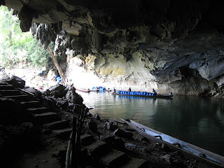 We did one stop in the cave to look at stalagmites and stalactites - a larger section in the middle of two river branches had pathways and lights to show the amazingess of the cave.