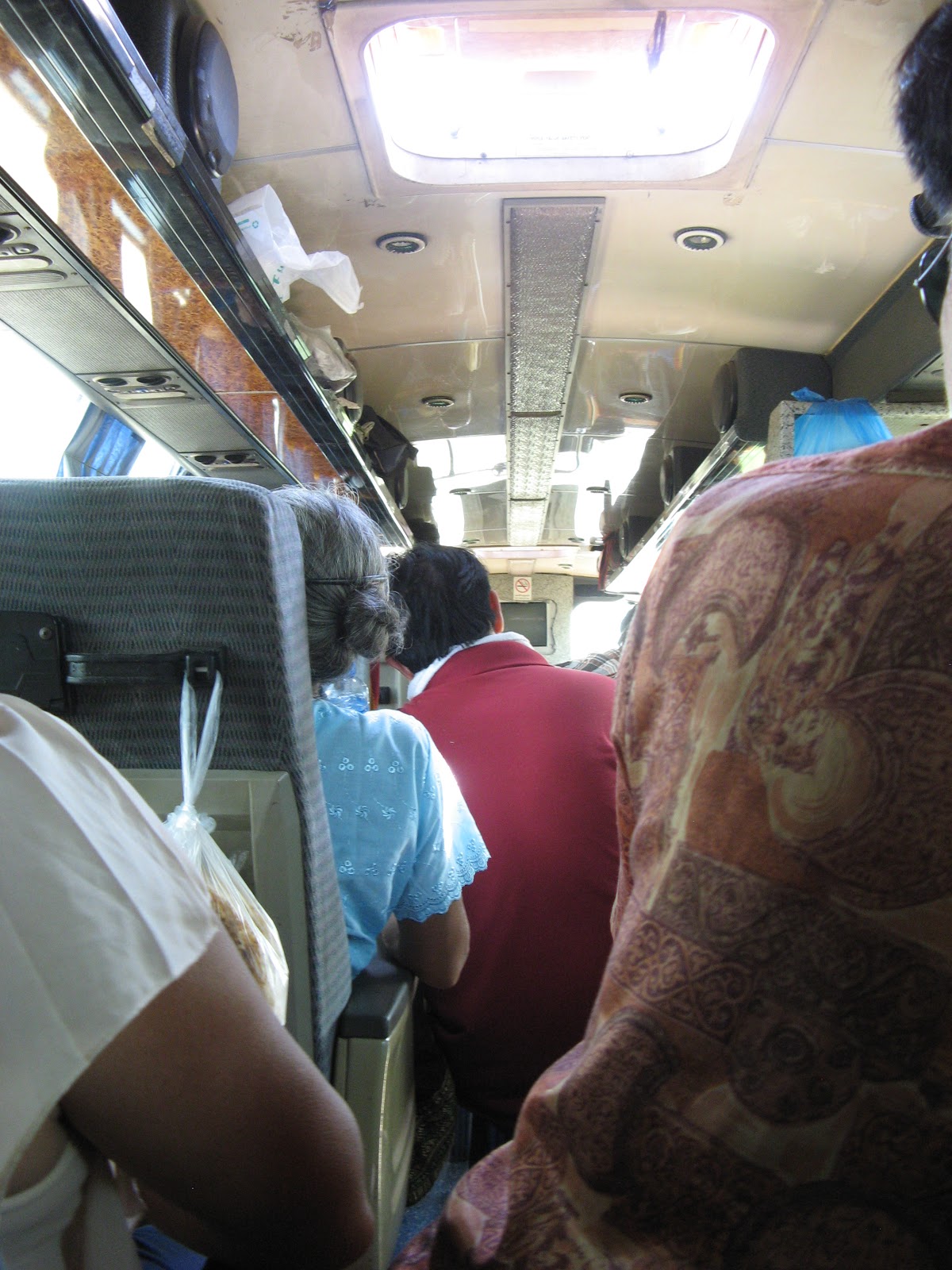 And then finally when it came to leaving from Thakek and going to Vientiane, we didn't get seats (or rather, beds) in the nightbus and had to spend an extra night. The bus next morning was a bus from the hell - we had seats at very far back and I could not fit into mine as there was no leg space and the armwrest was a solid block. So I sat on the floor, on the armwrest, knees up resting at the seat in front... all possible conformations. Boyfriend had a tummy ache and kept wanting to run in the bushes. He also had a cold, and the bus was very hot. To top this seven-hour ride off, two kids next to us started throwing up, and in the traditional Lao way, no one was prepared for this. So there was vomit all over the floor and we had to keep all of our handluggage in our laps instead of the floor, as there obviously was so much room to do this! The rescue came in the form of an iPod and a book to take our minds off. I can tell you, every single airplane journey ever since has felt like a heaven!
