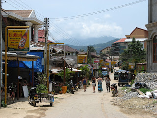 Last year I met some wonderful people in Vang Vieng, but this time we felt all too old for the place. May is already off-season for Laos, although the rainy season is only about to start, so there were not that many people about. Usually that's a good thing, but in Vang Vieng it seemed to mean that only the people most desperate to keep partying remained. Many of the restaurants and bars stood empty, and the ones that were popular were crowded with all too festive (drunk) revellers.