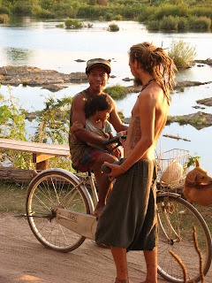 Mario, the guy who ran one of our favourite haunts, which served only one delicious dish per day and mojitos if he happened to have ice. If not, people were welcome to buy beer from his neighbours and bring it in. I liked the relaxedness of his business - here he's in the middle of a game of petanque as well as chatting in Lao to the head of the village (if I remember right?).