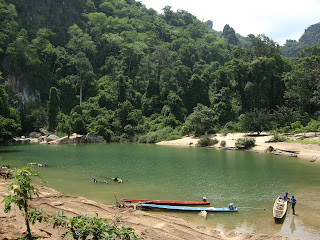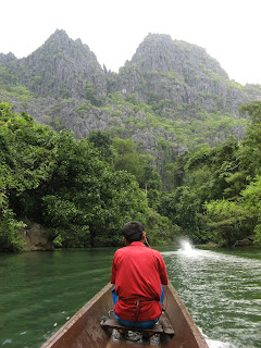 Thakek itself was pretty unexciting - a medium-sized Lao town by Mekong. But as soon as you were outside the town, the mountains were amazingly stunning. We spent one day doing a trip to the Kong Lor cave, a 7-km long cave formed by a river that runs underneath a mountain. And the way to explore the cave is obviously by boat!