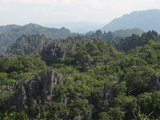 From Don Det we took a bus back north, this time to Thakek. We expected a long bus journey, so it was ok - especially with the front row seats. Less nice was the old woman throwing up next to Boyfriend and splashing him in vomit, and the lack of lunch/toilet breaks. We ended up eating fried balls of meat and other unidentifiable god-knows-when cooked bits of food sold by women who got on bus for a short ride to sell their wares, which was not the best for our tummies.