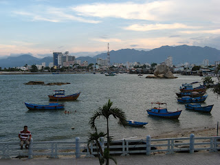 From Dalat we moved on to Nha Trang, once again by the brilliant Phu'o'ng trang bus. The road was brand new and ran through stunning views: higher up, it was plantations of all sorts (coffee, vegetables) and pine-forest-covered mountains and waterfalls, changing lower down into jungle-covered mountains. In Nha Trang we had six days of rest with occasional scooter-trip to the sights. We ate huge tiger prawns, drank delicious passion fruit beer, enjoyed the long sandy beach, had a spa afternoon, and just took it easy.