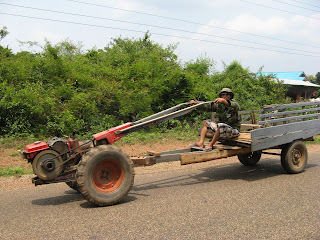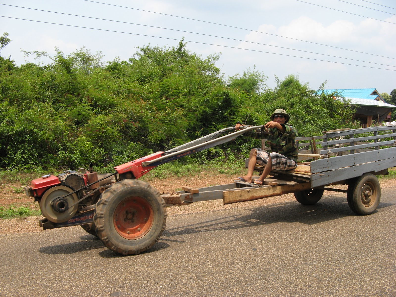 Village life - a tractor. A lot of the country roads were in pristine condition with very little traffic. As a big change to Vietnam, there weren't hordes of motos but a number of new Hiluxes on the road.