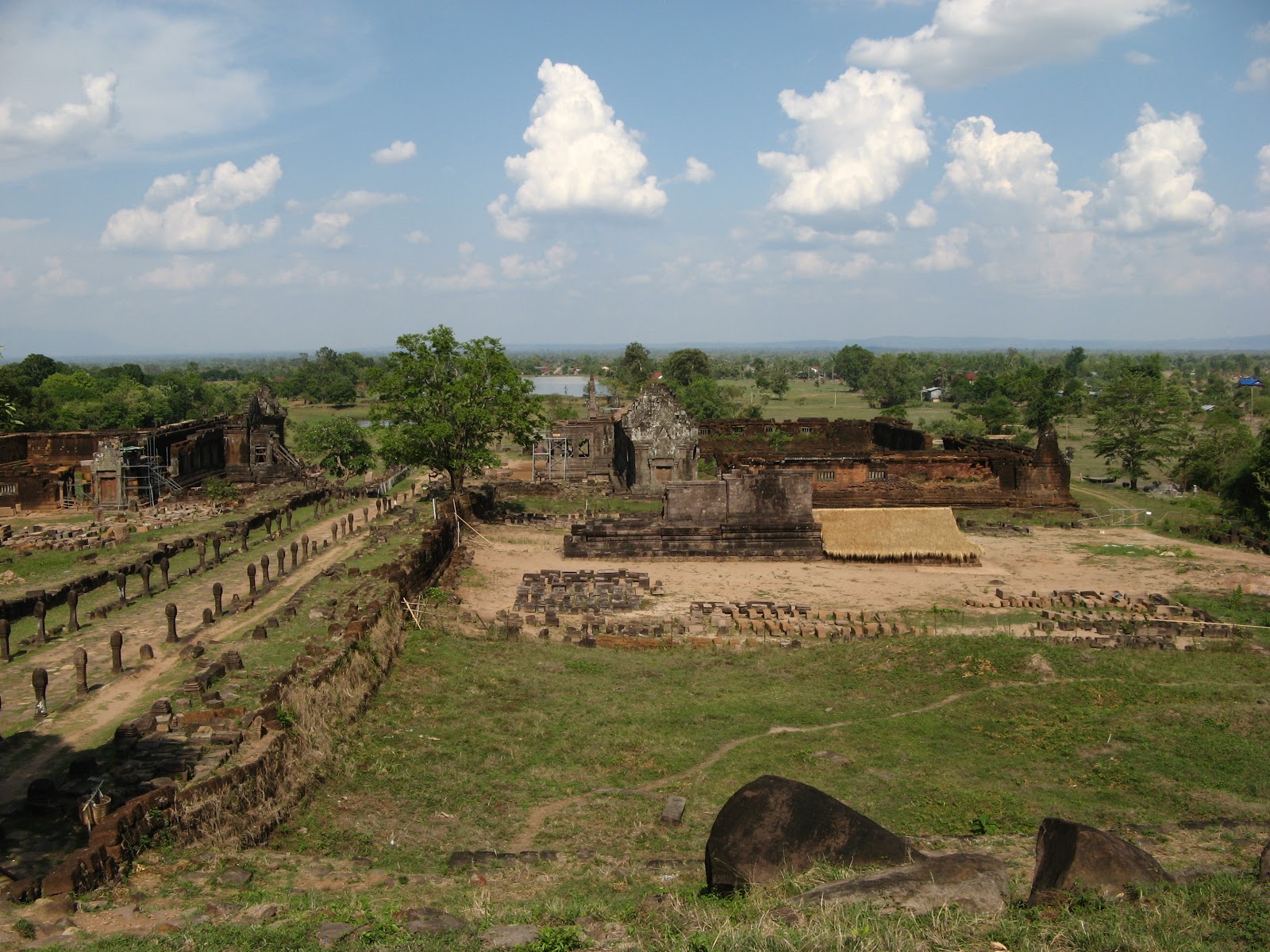 Vat Phou from the top. There two sanctuaries were currently under heavy renovation. The large pools also date back to the days of Khmer empire.