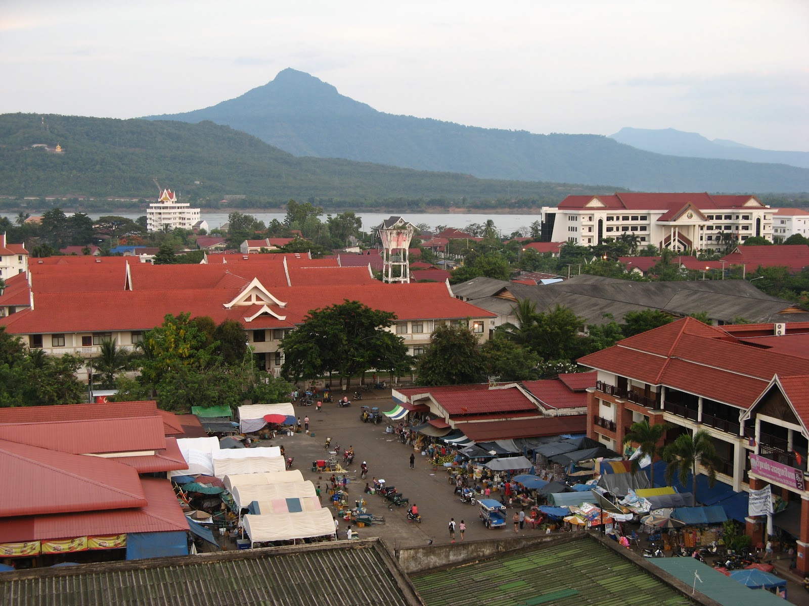 Pakse already had much more to offer. The city had more alive feel to it than the sleepy Savannakhet. The city is laid out in a confluence of two rivers, offering beautiful riverside views. We enjoyed quite a few delicious dinners at the Panorama restaurant on the roof of Pakse Hotel, and that offered 360 degree views over the city. It was especially pretty during the sunset and almost daunting with an upcoming storm. We also warmly recommended the place for both Western and Lao dishes!